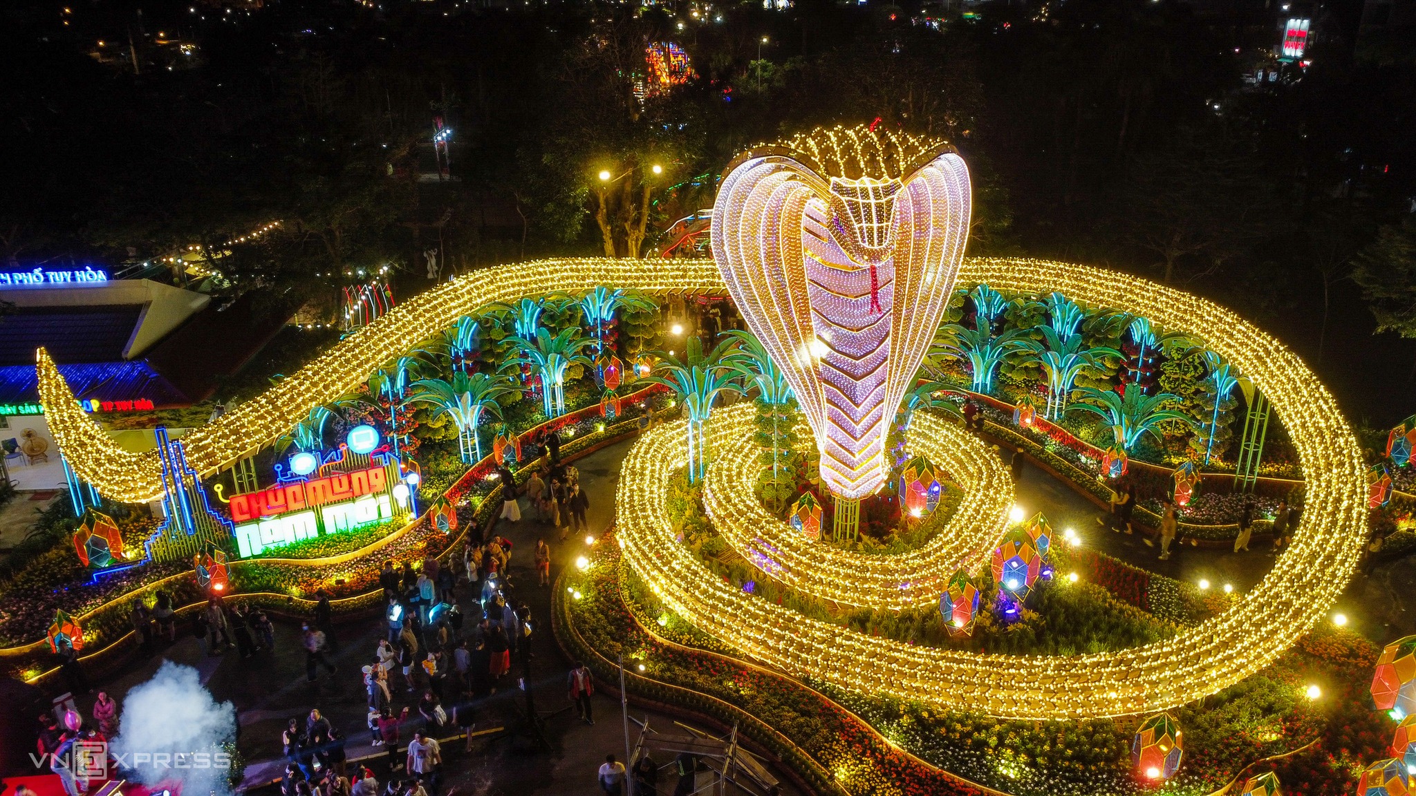 - Hoành tráng và uy nghi: Ở nhiều thành phố lớn hoặc những nơi có không gian rộng, linh vật rắn được tạo hình với kích thước lớn, thể hiện sự hùng vĩ, quyền lực và vẻ đẹp của một linh vật thần thoại. Chúng có thể được trang trí bằng đèn LED lộng lẫy, tạo hiệu ứng thị giác mạnh mẽ vào ban đêm.